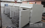(1)烘干工作時間12小時,烘干溫度120℃可調。預計產能為600Kg/車。產品采用托盤平鋪方式放置。